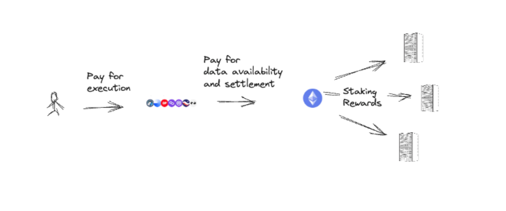 This connection becomes evident when we examine the functioning of current rollups. They charge gas fees in $ETH and must pay Ethereum for data availability in $ETH. In essence, these rollups lack the ability to enforce their own monetary policies; Ethereum dictates how much they must pay to the underlying chain.