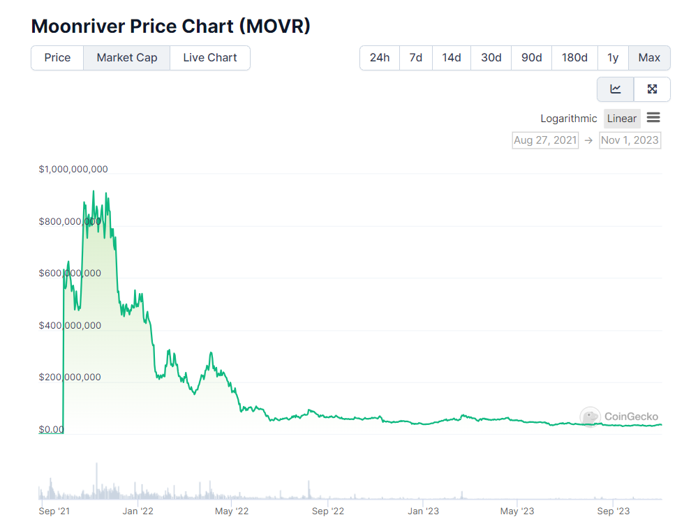 The L1s that survive will be those that bring unique value to an ecosystem (Solana, Monad, etc.). Offering an EVM-compatible chain with lower gas fees is not enough anymore. This seems obvious now, but in the past, there were many instances where EVM-compatible chains with lower gas costs reached outsized valuations. Take Moonriver for example, an EVM-compatible chain on Kusama (the canary chain of Polkadot), which reached an all-time-high of $494 in Q4 2021 and is now trading at $4.