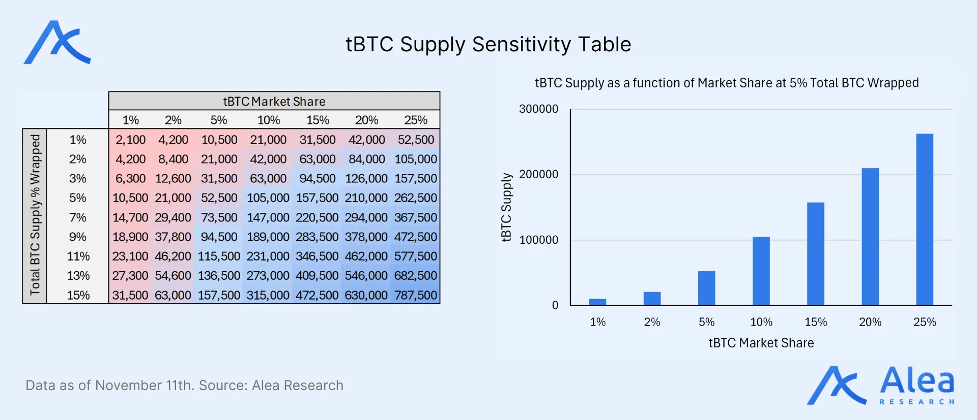 The upside for tBTC depends on two primary drivers: wrapper penetration (% of total BTC supply) and winning wrapper market share (% share of wrappers). Institutions have already proven that they are comfortable with BTC’s price exposure. Now they want yield with a high degree of operational efficiency: faster mint/redeem cycles, live reserves, and listings in key DeFi protocols.