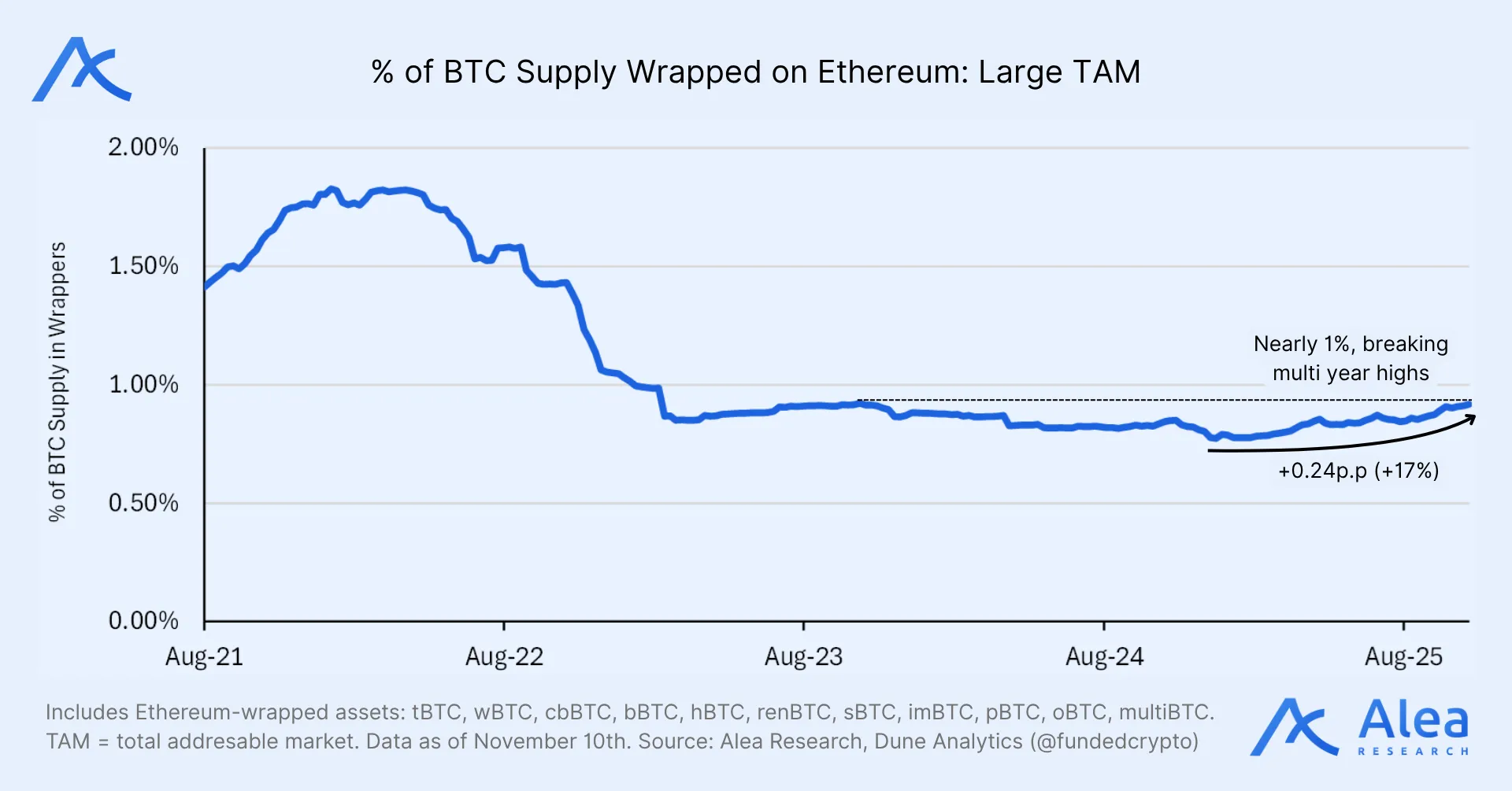 Wrappers differ by how they optimize for different tradeoffs in the custody and verification spectrum. Moving BTC off the Bitcoin mainnet chain is a choice that’s expected to bring on additional utility, turning BTC into a productive asset. The real edge comes after the mint, with onchain distribution and yield. Deep protocol integrations across DeFi attract flows, unlocking demand for the use of wrapped BTC as collateral, ensuring deep DEX liquidity, and allowing for a variety of yield opportunities. Wrappers embedded across leading L1 and L2 chains stand to benefit from their DeFi ecosystem’s network effects—that’s where isolated sidechains or single-chain assets fall behind.