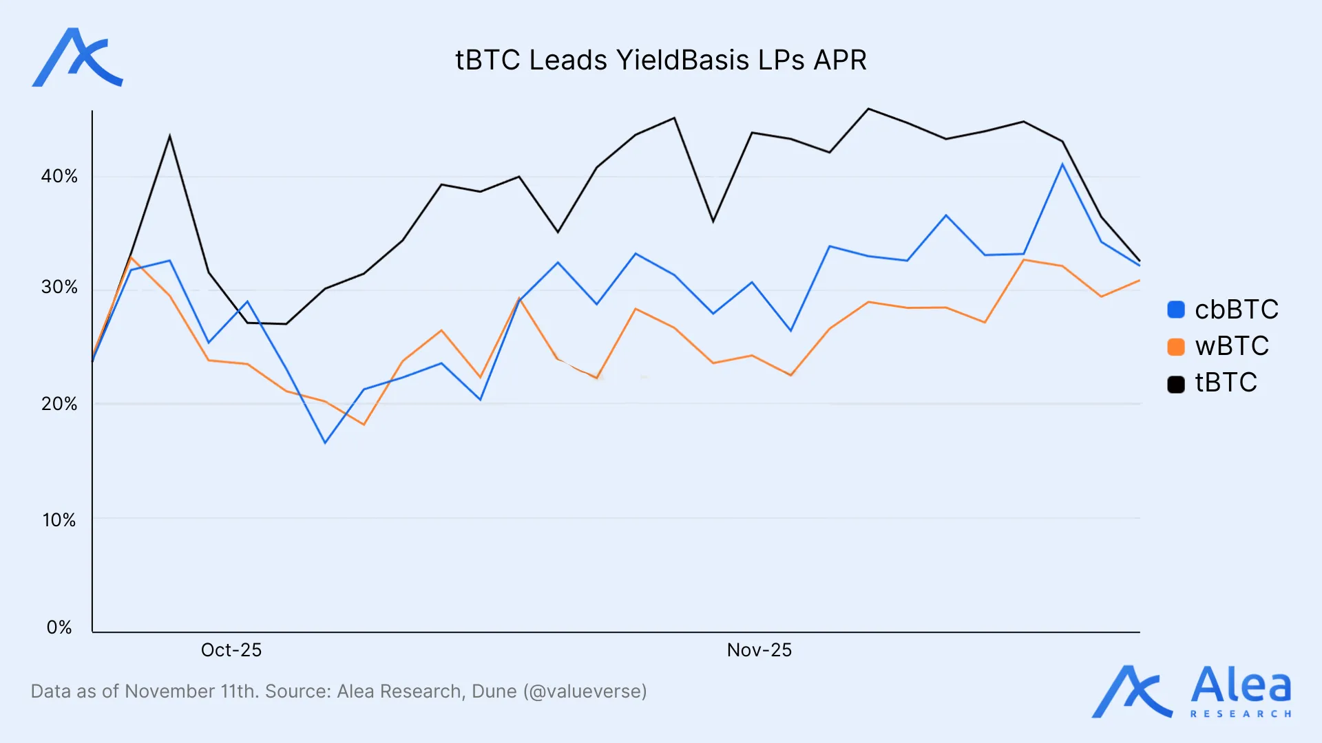 Other examples of current strategies include providing and staking liquidity on YieldBasis ($50M deposited in record time, caps filled under 1 hour), lending/borrowing on leading Ethereum money markets like Aave or Spark, providing DEX liquidity against WBTC and cbBTC on Curve, looping via AlphaFi on Sui, on Starknet’s BTCFi campaign protocols like Vesu, EndurFi, or Ekubo, or used as collateral for stablecoin minting on projects like Nerite.